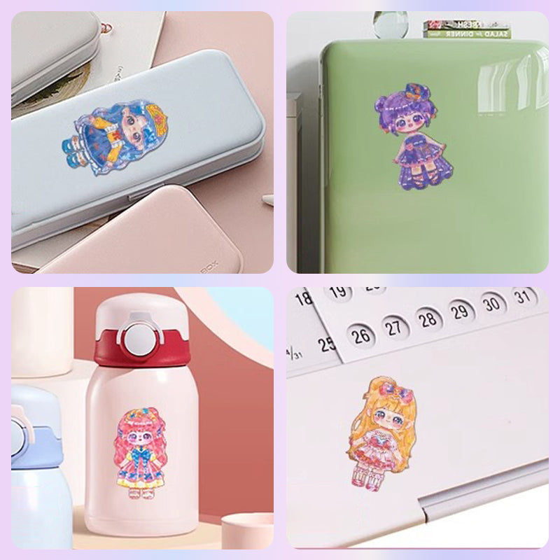 BRIGHT, VIBRANT AND VERSATILE DESIGN: Laser-coated magnetic pieces with bright, vivid colors offer visual appeal. These versatile stickers can be attached to surfaces like refrigerators, pencil cases, or thermos bottles for on-the-go fun.