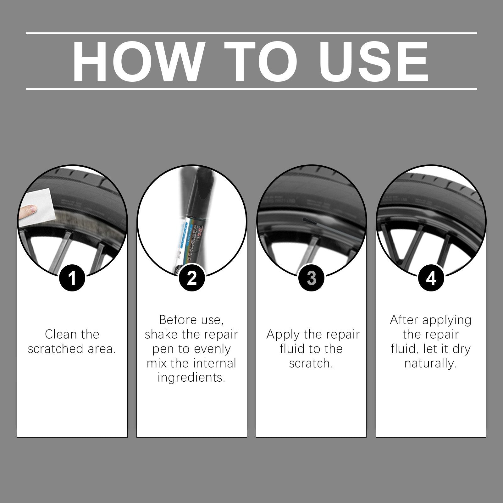 - [Scratch Repair] If you park sideways, the wheels are easily scratched, and this rim repair kit can help you repair scratches and minor dents.